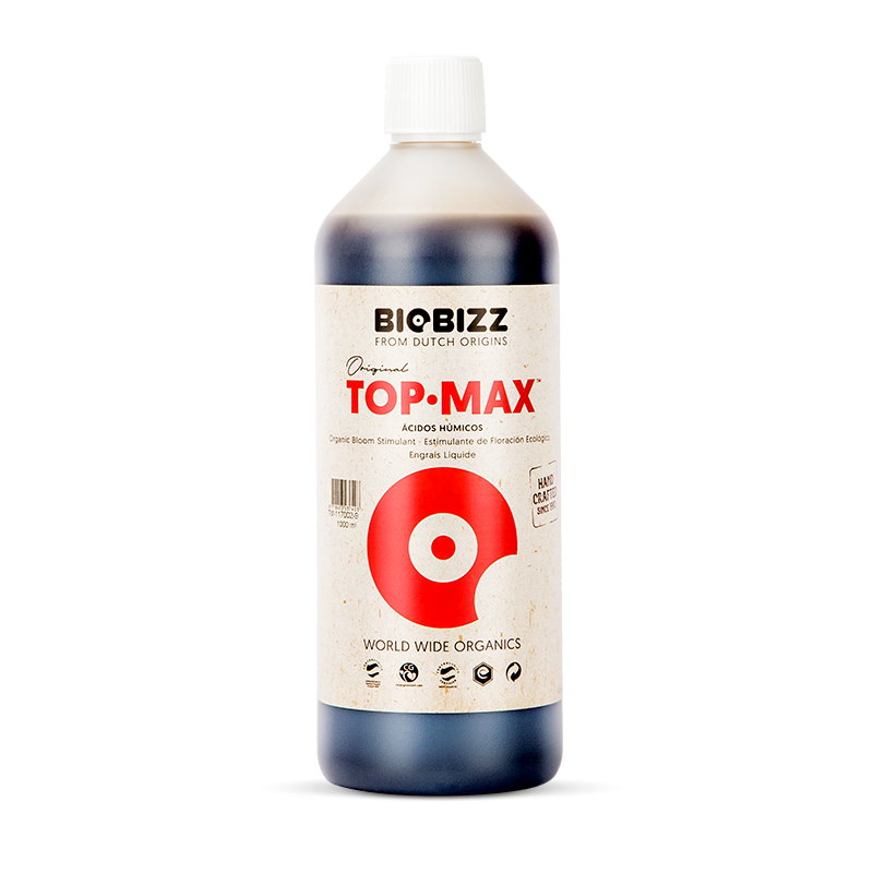 TopMax BioBizz – 100% органический усилитель цветения тройного действия: увеличивает размер и вес соцветий, обеспечивает приятный сладкий вкус плодов, способствует поглощению растением питательных веществ. Специально разработан для использования с почвенными смесями Biobizz.