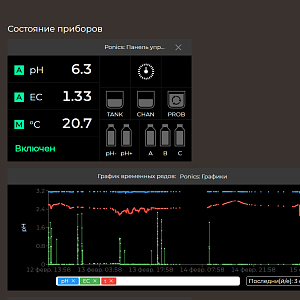 Помимо основных функций, таких как управление и контроль параметров растворами pH и EC и уровня раствора, прибор оснащён новыми функциями: