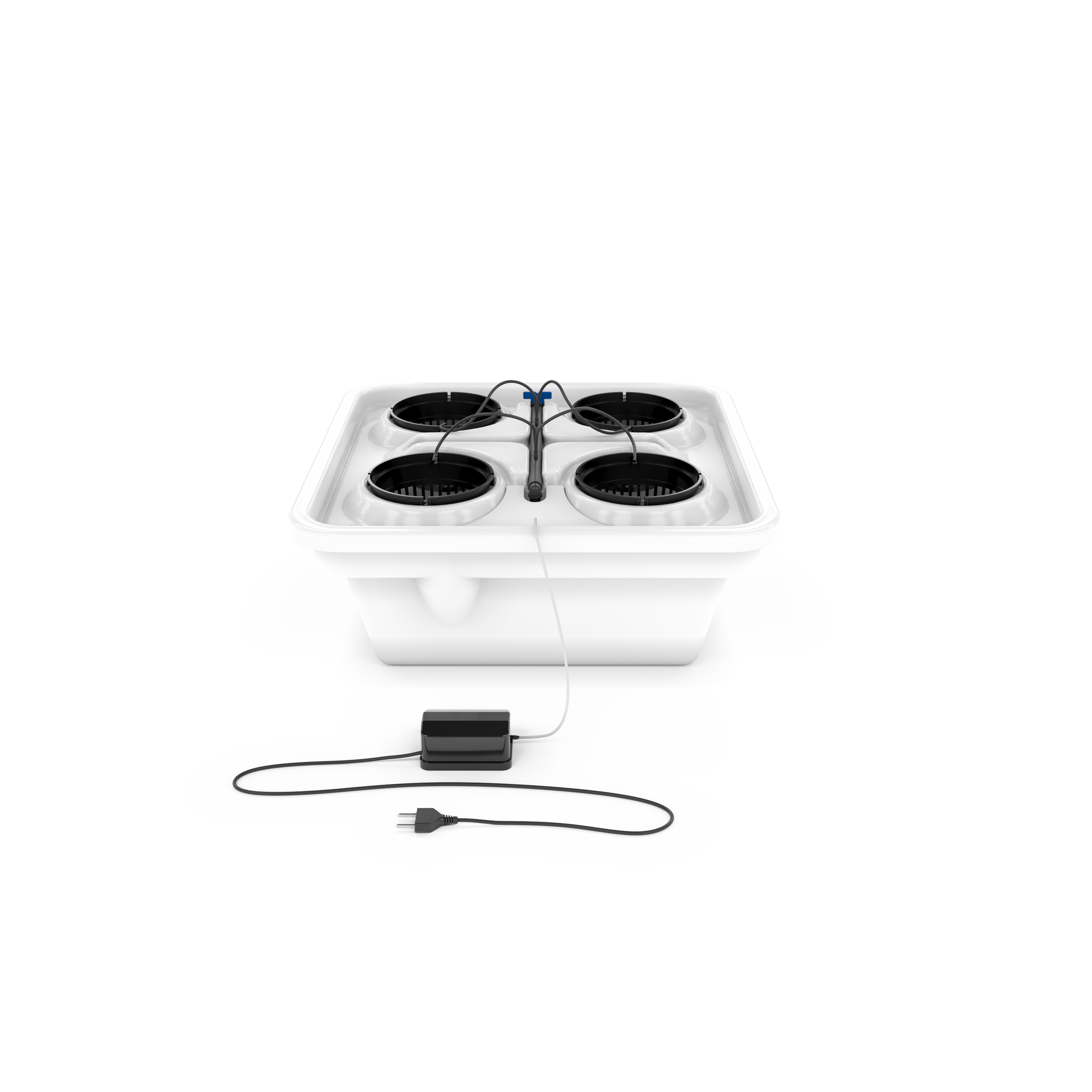 Практика Окси 4 представляет собой квадратный бак с крышкой, в которой спроектированы четыре посадочных места. Погружная помпа осуществляет подачу питательного раствора к растениям через магистраль полива.
