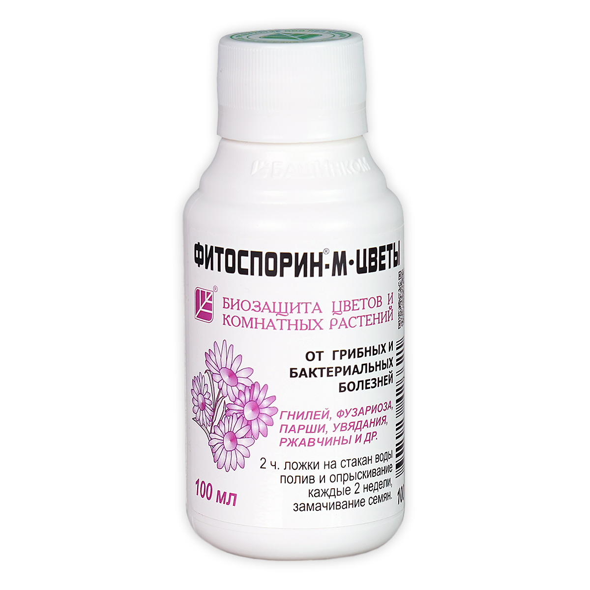 Биофунгицид Фитоспорин-М цветы защищает от гнилей, парши, черной ножки, фузариоза, фитофтороза, фомоза, серой гнили, ризоктониоза, альтернариоза, бактериозов, пероноспороза, мучнистой росы, ржавчины, септориоза и другий болезней.Биофунгицид, в основе которого полезные фитобактерии в споровой форме, проникающие в ткани растений и вырабатывающие биологически активные вещества для их защиты и стимуляции. Абсолютно безопасный для здоровья человека и животных, но при этом не уступающий по силе химическим, препарат. Не вызывает привыкания у вредных микробов, служит как для профилактики, так и для лечения основных болезней растений. Обладает пролонгированным действием. Оздоравливает почву.