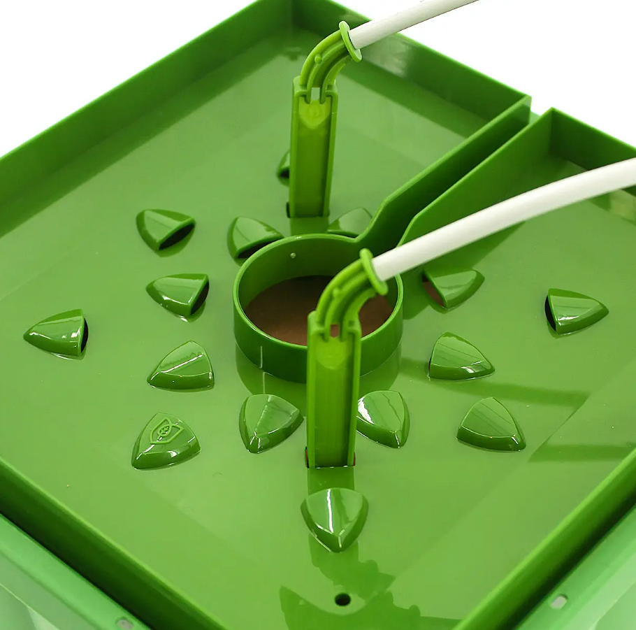 Закрепите шланги Flora Tube на краю крышки клипсами Flora Clip. Подключите их к резервуару с питательным раствором. Настройте таймер или подачу воды.