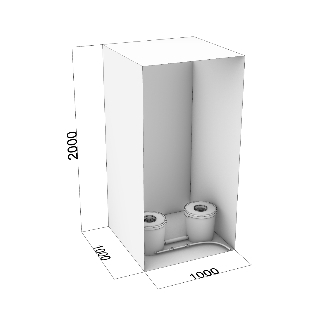 Совмещенная система гидропоники (глубоководная культура и капельный полив) на два растения. Сочетает в себе простоту и эффективность метода глубоководной культуры с преимуществами капельного полива.