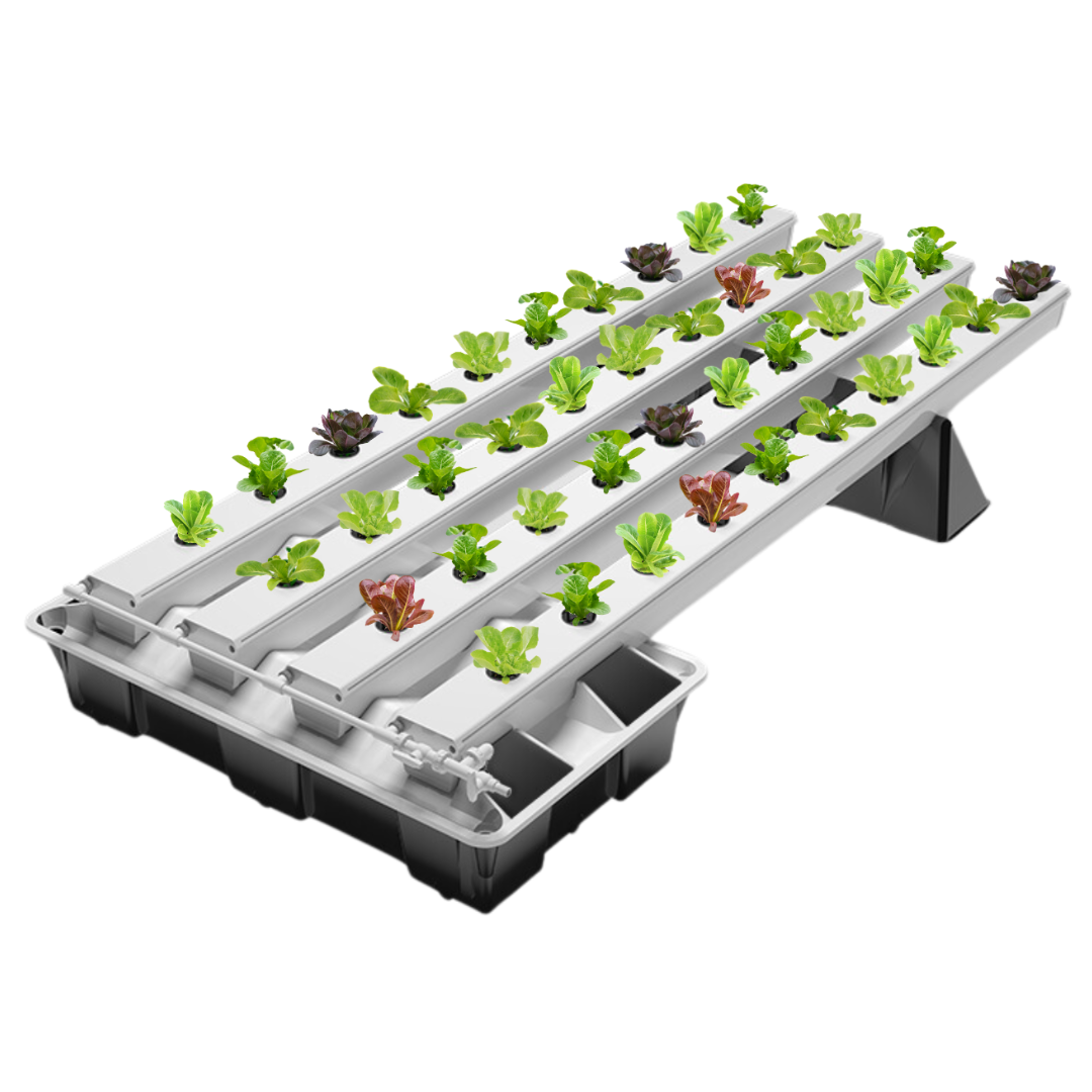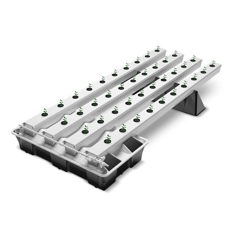 Канальная гидропонная система, работающая по принципу NFT (методика питательного слоя), позволяющая выращивать одновременно 40 растений в индивидуальных горшках.