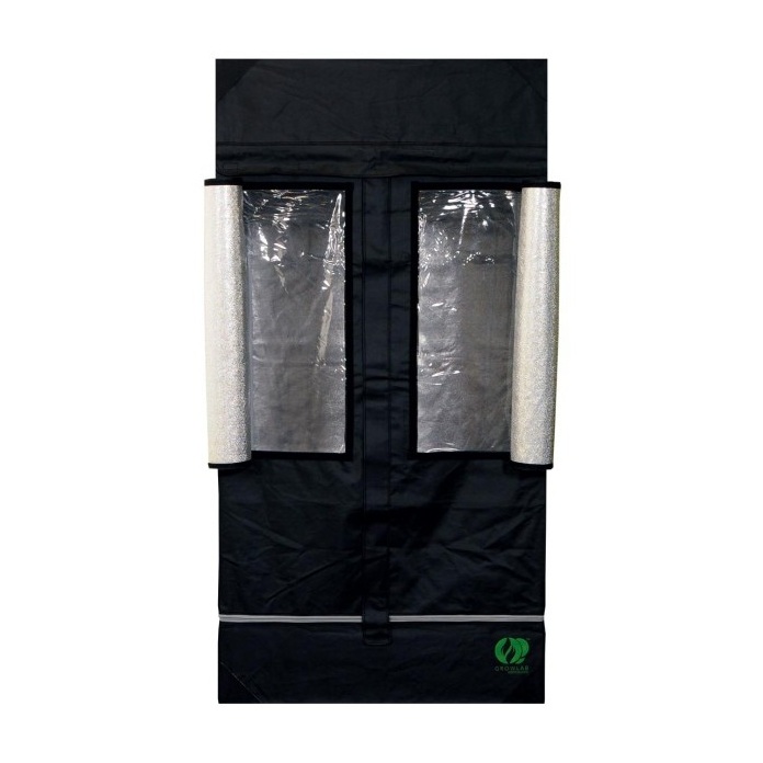 Модель бокса HOMEbox HomeLab 100 имеет полезную площадь 1 квадратный метр. В качестве ткани корпуса используется брезентовый материал черного цвета с отличными изоляционными свойствами и повышенной износостойкостью. Внутренняя отделка выполнена материалом PAR+ который обеспечивает высокий коэффициент отражения световой и тепловой энергии.