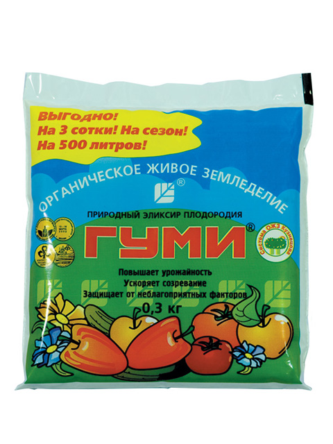 Механизм действия. Ростоускоряющее и защитное действие Гуми связано с его гормоноподобным эффектом (ауксины и цитокинины) в растительной клетке. Эти свойства препаратов четко проявляются в активации ростовых процессов, а также при воздействии стрессовых факторов внешней среды, что приводит к усилению собственных защитных сил растений против физических (жара, холод), химических (засоление, тяжелые металлы, радионуклиды, пестициды) и биологических (грибные, бактериальные, вирусные болезни) факторов. Усиление действия БМВ-гуминовых кислот сопряжено с оптимизацией набора биогенных микроэлементов, позволяющих повысить свойства иммуно- и ростостимуляции, биосинтеза защитных веществ, в том числе и фунгицидоподобных соединений. Благодаря этим качествам препараты Гуми и Гуми-М целесообразно использовать в составе защитно-стимулирующих веществ.