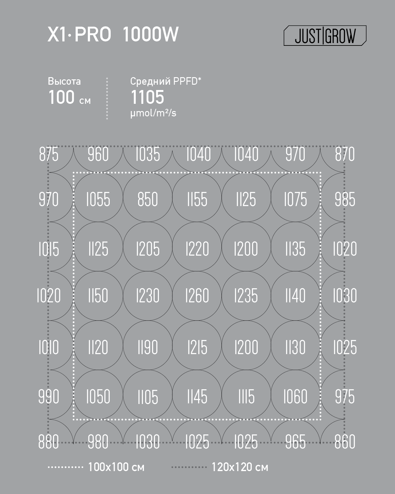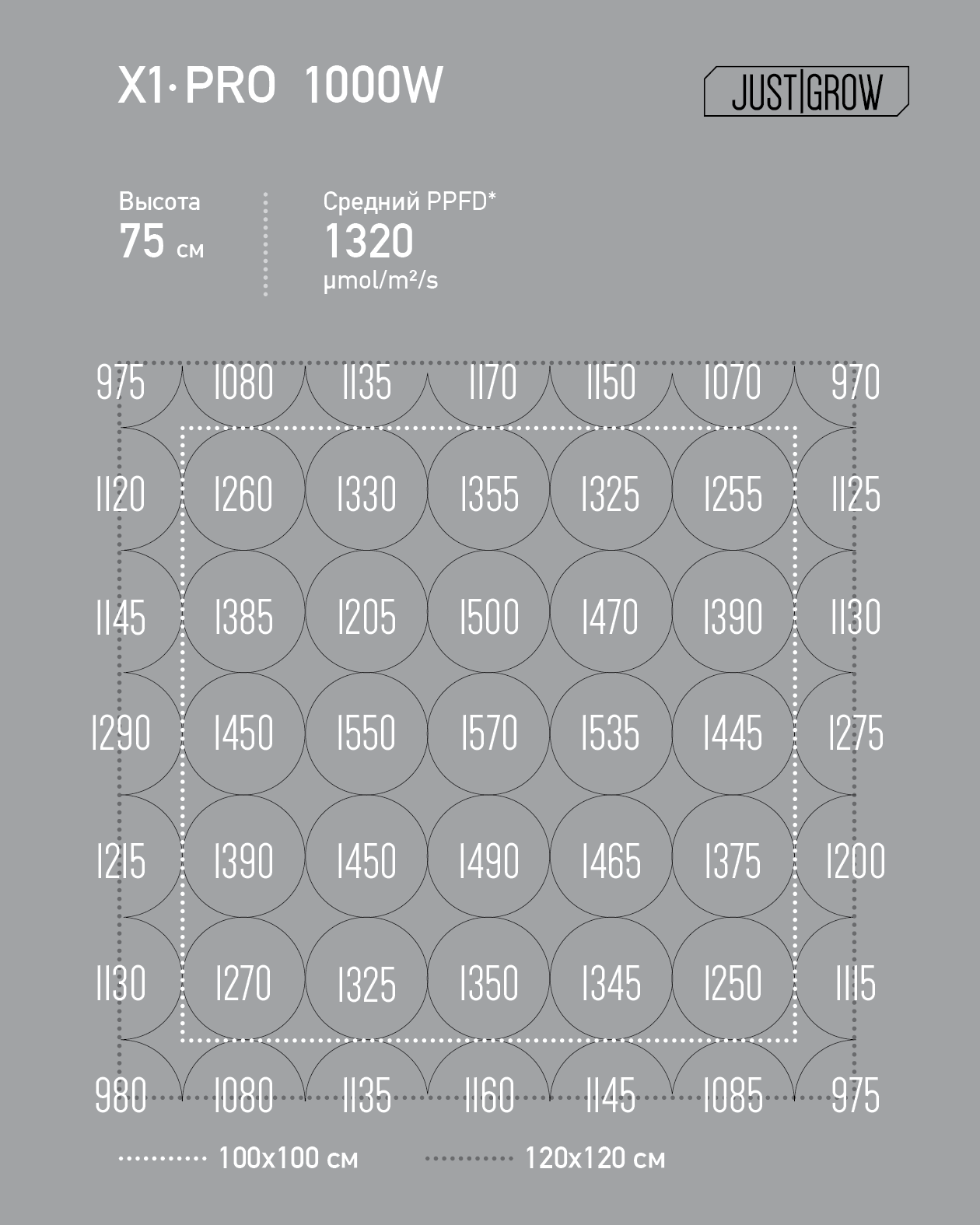 X1 PRO обеспечивает равномерный уровень освещенности, недостижимый конкурентами. Больше нет горячих точек. Нет холодных зон. X1 управляет светом аккуратно и точно. Отклонение в равномерности распределения PPFD составляет не более 20%.