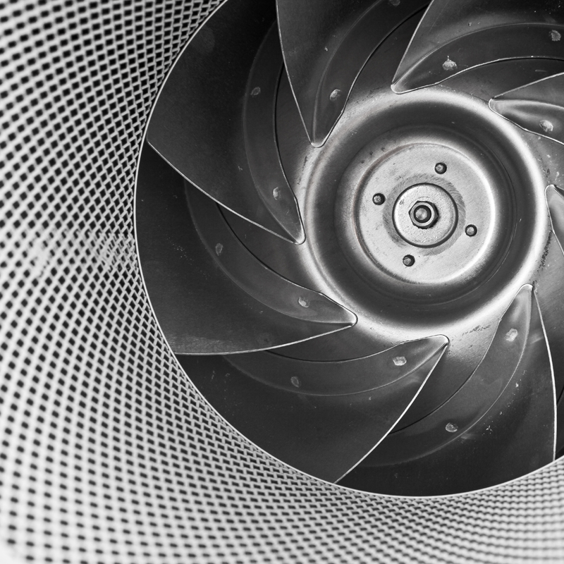 Имеет возможность регулирования скорости напряжением. Внутрений корпус специальной конструкции преломляет звуковые волны под определенным углом и направляет их на слой шумопоглощающего материала. Звуковые волны, проходящие через внутренний корпус вентилятора, гасятся слоем шумопоглощающего материала. В местах соединения корпуса вентилятора и монтажного кронштейна используется материал, препятствующий передаче вибраций.