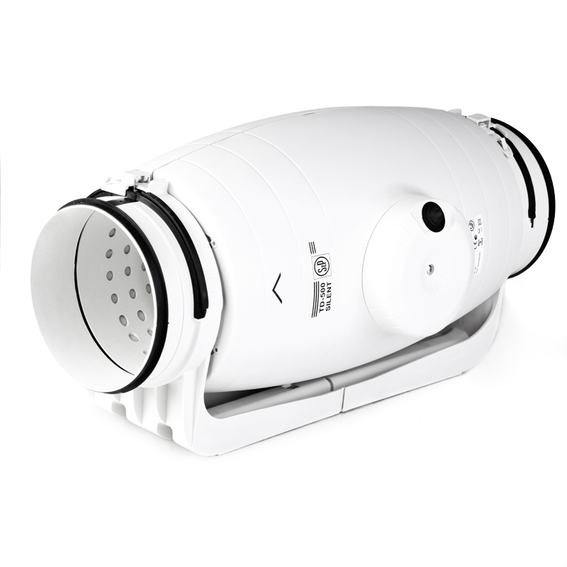 Вентиляторы серии TD-SILENT с диагональными лопатками изготавливаются из прочного пластика. Внутренний перфорированный корпус специальной конструкции и слой шумопоглощающего материала значительно снижают уровень шума от вентилятора. Вентиляторы комплектуются монтажными кронштейнами с быстроразъемными хомутами - это позволяет извлекать корпус вентилятора для обслуживания без демонтажа воздуховодов. В местах соединения корпуса вентилятора и монтажного кронштейна используется материал, препятствующий передаче вибраций. На корпусе вентилятора установлена клеммная коробка.