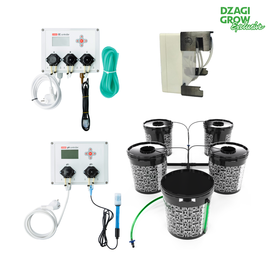 Комплект AquaPot Upgrader + AquaPot XL4 + E-MODE регуляторы pH и EC — это полный автоматизированный набор для выращивания на 4 растения, с возможностью контроля питательного раствора и полива. Крепление AquaPot Upgrader обеспечивает простой и удобный монтаж приборов прямо на ёмкость AquaPot, а также правильное позиционирование электрода в питательном растворе. Регуляторы позволяют измерять уровни pH и EC в режиме реального времени, что помогает точно корректировать раствор и оптимизировать питание растений.