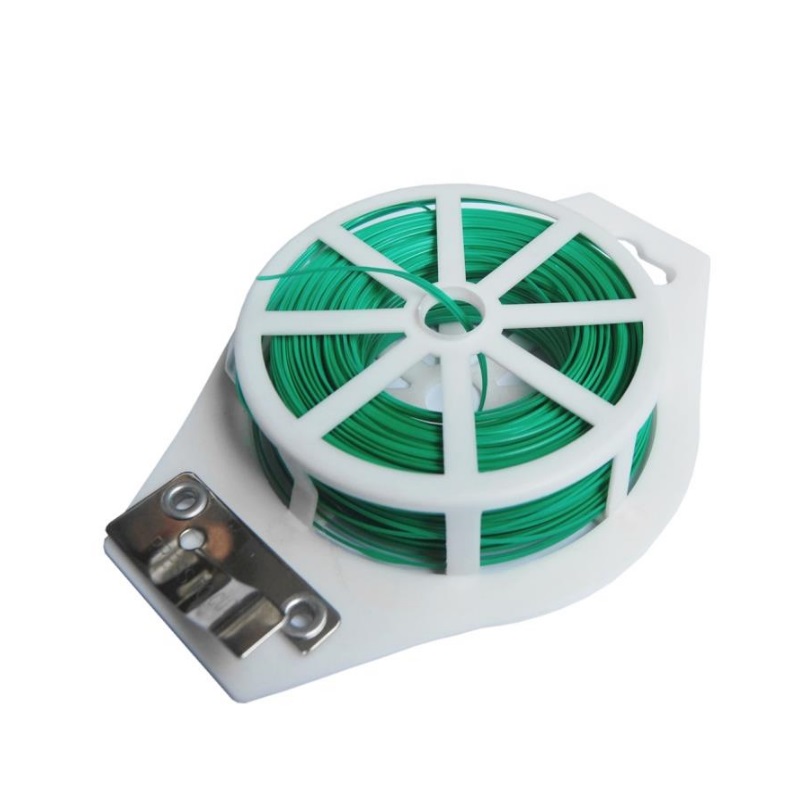Проволока изготовлена из гибкого, но очень прочного металла в мягкой оболочке, которая защищает растения от повреждений.