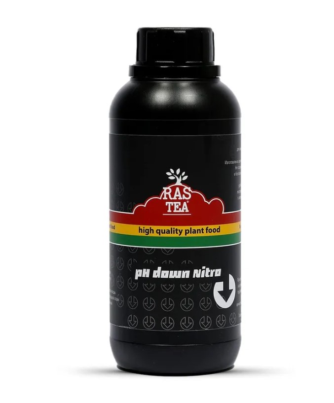 Rastea pH Down Nitro концентрированный раствор для снижения уровня pH в питательном растворе. Изготовлен из азотной кислоты высокой степени очистки. Не содержит тяжелых металлов, вредных примесей и безопасен для растений в адекватных количествах. Высокая концентрация делает препарат удобным для приготовления больших объёмов питательного раствора. При добавлении в жёсткую воду, азотная кислота в результате реакции нейтрализации переводит труднорастворимые соли жёсткости в доступную растениям форму, повышая питательную ценность и препятствуя образованию “накипи” на ёмкостях и на капельницах.