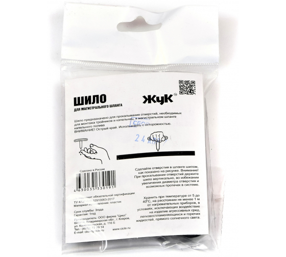 Шило для капельного полива Жук предназначено для прокалывания отверстий в магистральном шланге. Изделие изготовлено из качественного материала, имеет длительный срок эксплуатации.