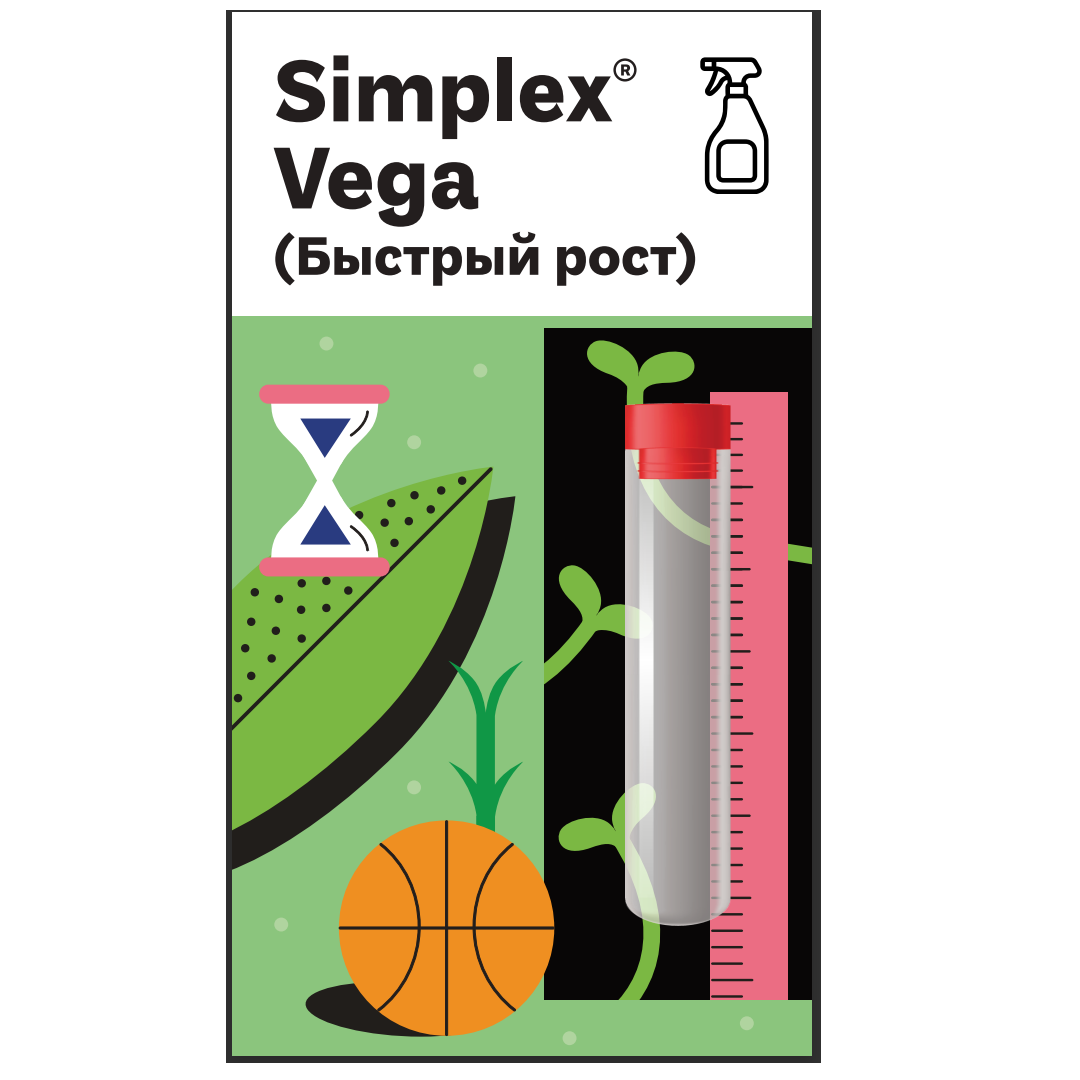 Simplex Vega стимулятор вегетации, содержащий все необходимые для фотосинтеза элементы и соединения в хелатной форме. При обработке стимулятором наземной части растения эффект наступает через 3-5 минут после нанесения: лист приобретает здоровый зеленый цвет, увеличивается усвоение углекислого газа, восстанавливается упругость. В целях профилактики хлороза и дефицита питательных элементов рекомендуется обрабатывать препаратом здоровые растения на стадии вегетативного роста.