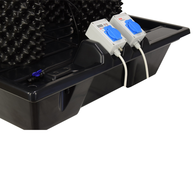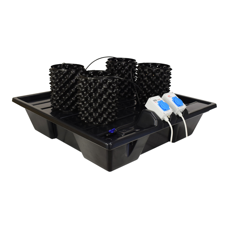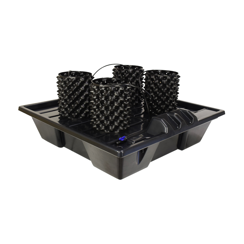 Система представляет собой квадратный бак с крышкой, которая одновременно является поддоном. Поддон имеет дренажный слив, ведущий в бак (реверсивный слив) или в емкость рядом с баком (нереверсивный слив), и капельную линию. Раствор при помощи помпы подается из бака и увлажняет стоящие на поддоне емкости (Air Pot, GrowBag, и пр.) с растениями.