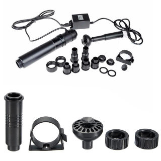 В комплект входят переходники и насадки, подходящие для присоединения стерилизатора ко всем типовым размерам шлангов и помп. Стерилизатор может работать как в погруженном состоянии, так и находясь вне аквариума.
