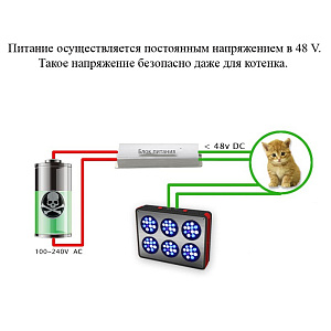 Питание осуществляется постоянным напряжением в 48 V.