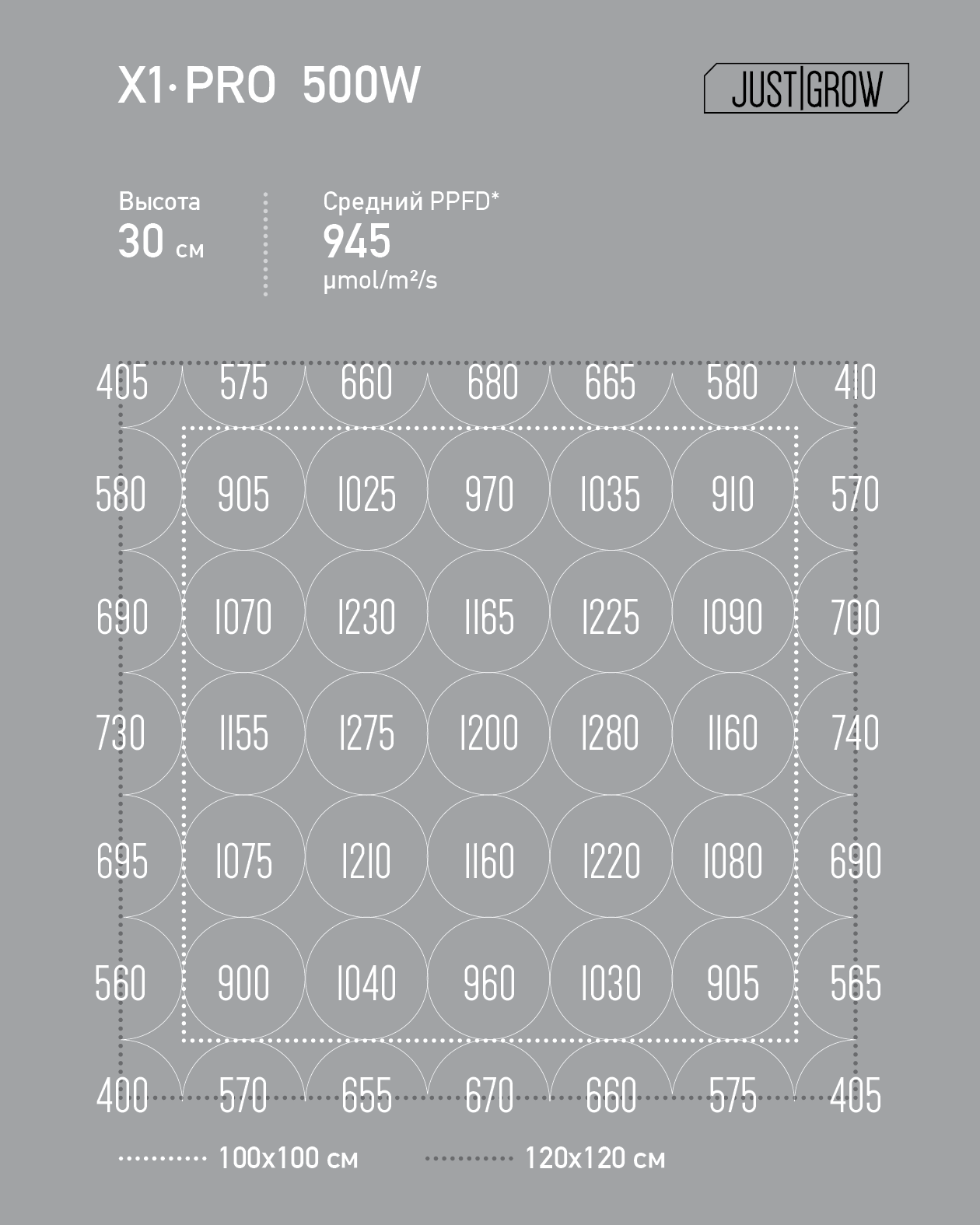 X1 PRO обеспечивает равномерный уровень освещенности, недостижимый конкурентами. Больше нет горячих точек. Нет холодных зон. X1 управляет светом аккуратно и точно. Отклонение в равномерности распределения PPFD составляет не более 20%.