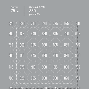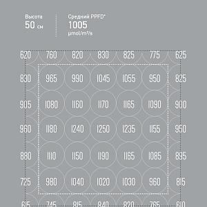 X1 PRO обеспечивает равномерный уровень освещенности, недостижимый конкурентами. Больше нет горячих точек. Нет холодных зон. X1 управляет светом аккуратно и точно. Отклонение в равномерности распределения PPFD составляет не более 20%.