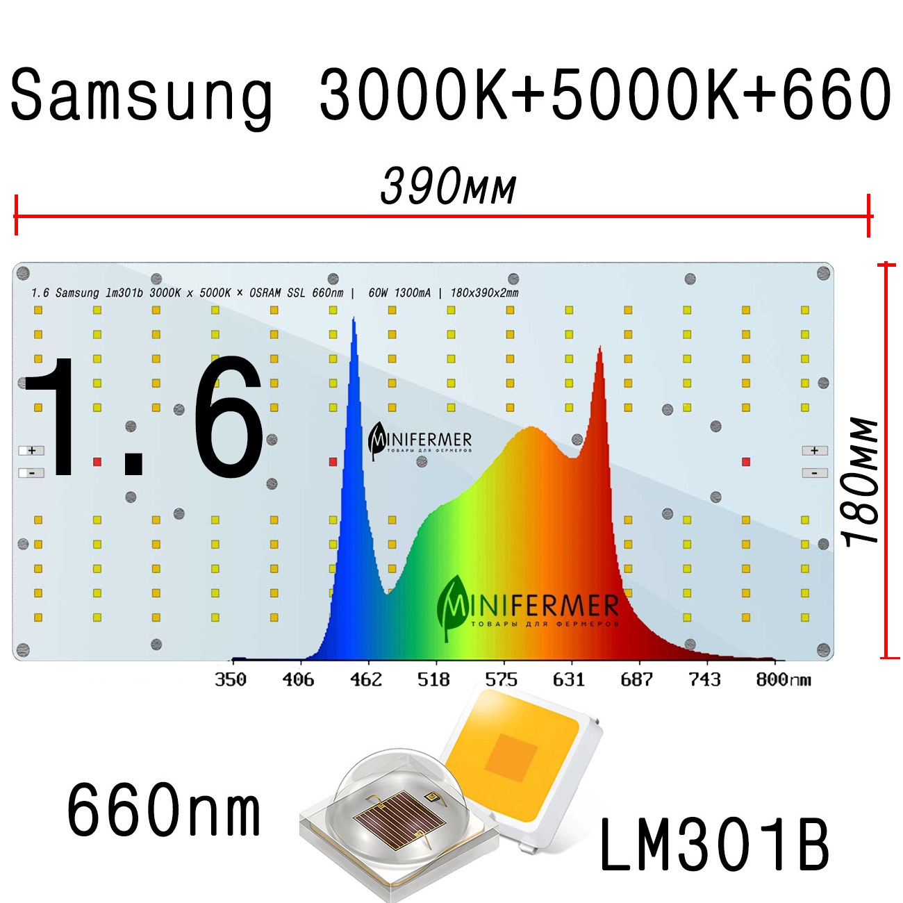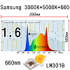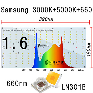 Модификация спектра: 1.6 Quantum board 180 х 390 Samsung lm301b 3000K+5000K + Samsung lh351h 660nm