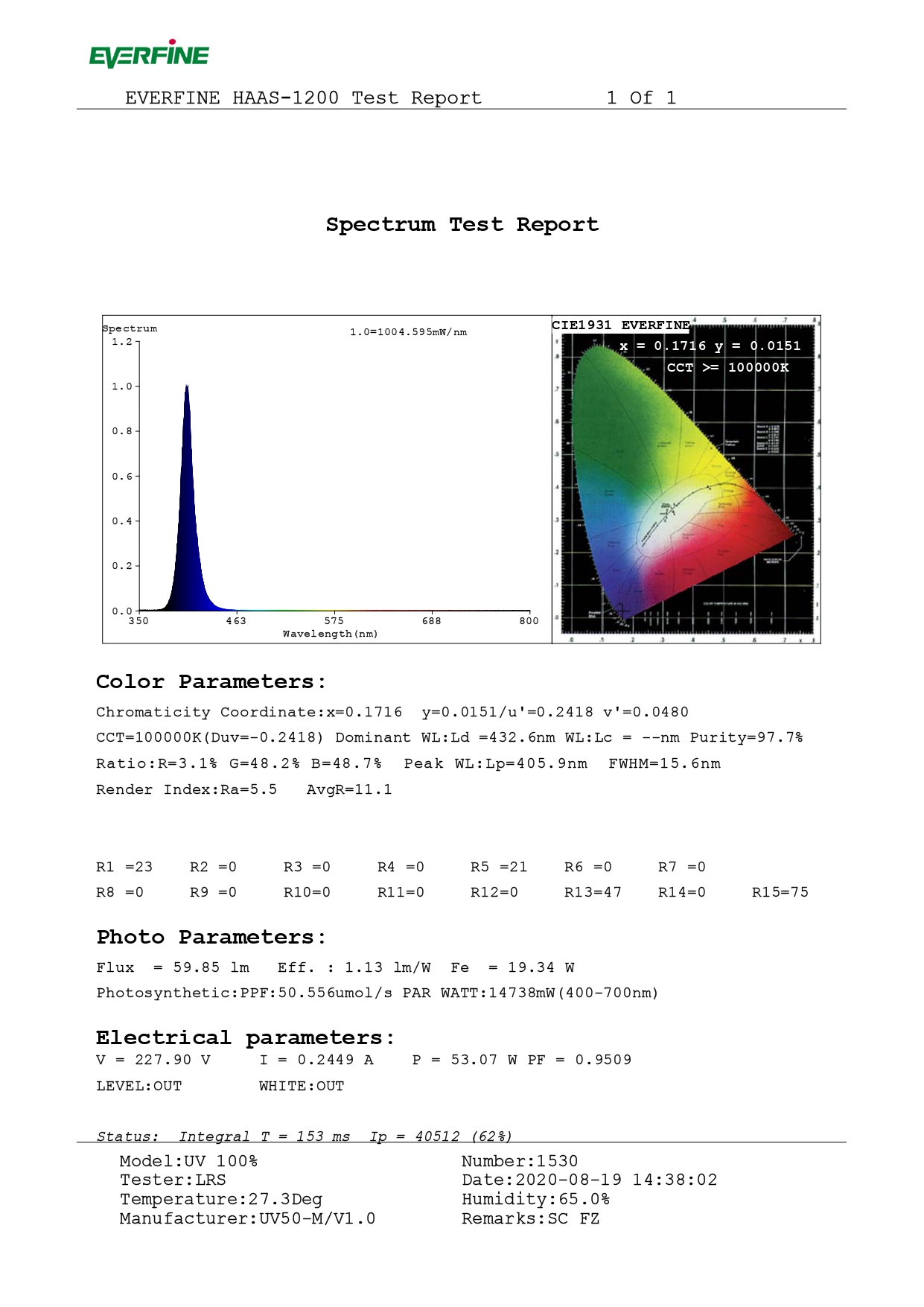 Спектр: Ультрафиолетовый спектр (400nm)