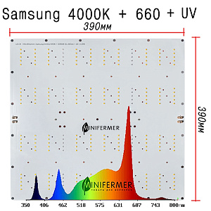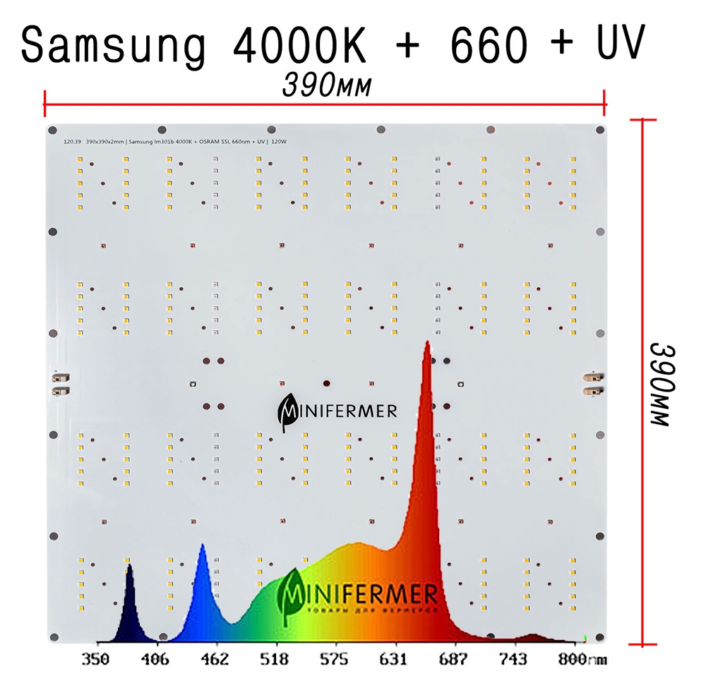 Модификация спектра: 120.39 Quantum board 390 х 390 Samsung lm301b 4000K + Osram SSL 660nm+UV+660 nm 3030