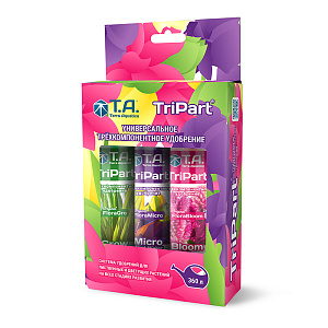 TriPart T.A. - это оригинальная 3-х-компонентная усовершенствованная система удобрений. Содержит все основные и вспомогательные микроэлементы, необходимые для сбалансированного питания растений, что способствует увеличению урожая и повышению его качества. Эти удобрения являются полноценной и сбалансированной системой, которая обеспечивает растения всем необходимым для успешного выращивания здоровых растений и больших цветков.