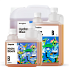 Линейка базовых органоминеральных удобрений для выращивания гидропонным способом: обеспечивает растения всеми необходимыми элементами, учитывая особенности различных гидропонных методов выращивания; адаптировано для воды с уровнем ЕС 0,4-0,6 мСм/см.