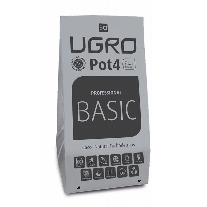 UGro® "Контейнер 4" (Pot 4) представляет собой 500 граммовый брикет кокосового субстрата, упакованного в устойчивый к воздействию ультрафиолетовых лучей пластиковый контейнер для выращивания с дренажными отверстиями в основании.