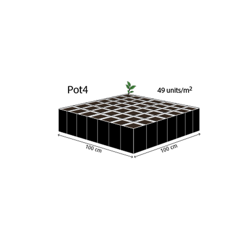 При помощи UGro® "Контейнер" (Pot) вы можете добиться не только большей рентабельности, сэкономив на покупке цветочных горшков, но и оптимизировать количество растений: так на 1м2 умещается 49 пакетов "Контейнер 4 л" (Pot 4) (7 рядов по 7 пакетов), 25 пакетов "Контейнер 9 л" (Pot 9) (5х5) или 4 пакета "Контейнер 60 л" (Pot 60) (2х2).