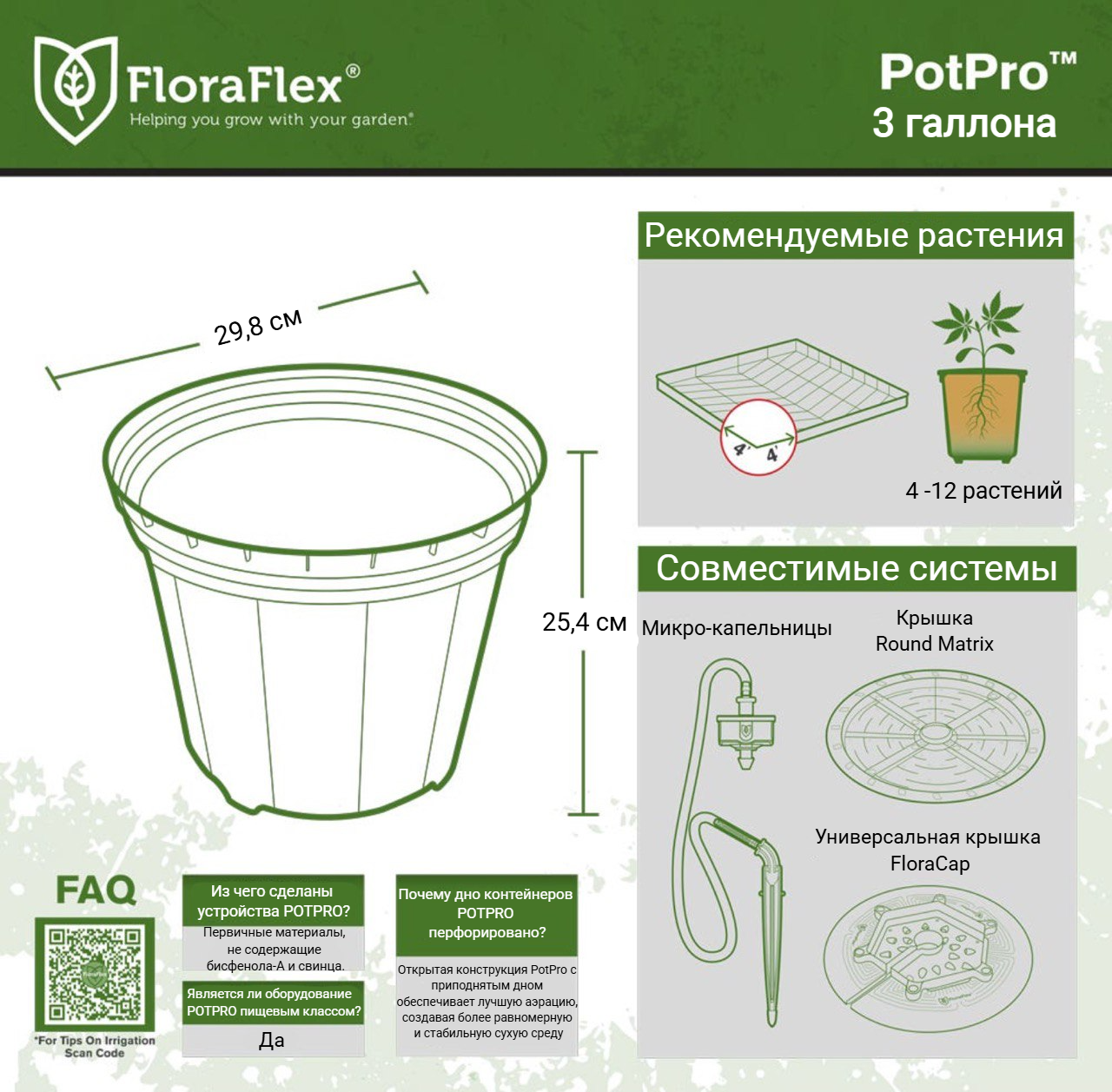 FloraFlex PotPro 3″, ведро для капельного полива круглое 11,3 л