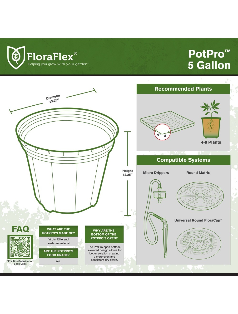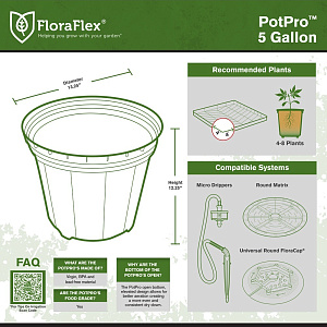 FloraFlex POTPRO 5" - удобный и функциональный горшок для проращивания растений и для дальнейшей пересадки с сохранением целостности корневой системы. Обеспечивает циркуляцию жидкости внутри как сверху, так и снизу растения.